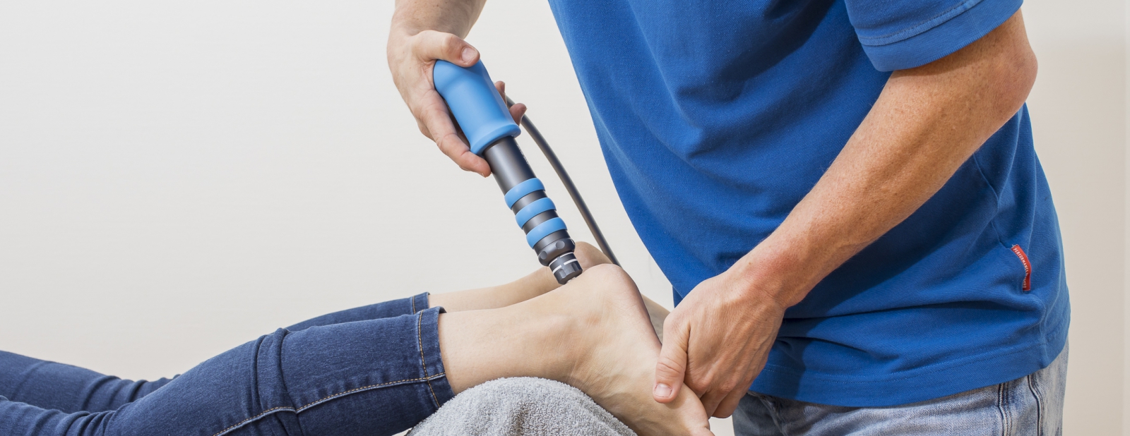 Allereerst wordt bekeken waar de pijn precies zit. Een echo, meestal gemaakt door de podoloog in onze praktijk, wijst uit waar het pijngebied zit. Dit gebied wordt behandeld met korte shockwave impulsen. Gemiddeld behandelen wij patiënten zes tot zeven keer met shockwave. Binnen de eerste drie sessies moet er zichtbaar resultaat zijn, voordat wij verder gaan behandelen. De rest van de behandeling wordt aangevuld met oefentherapie.